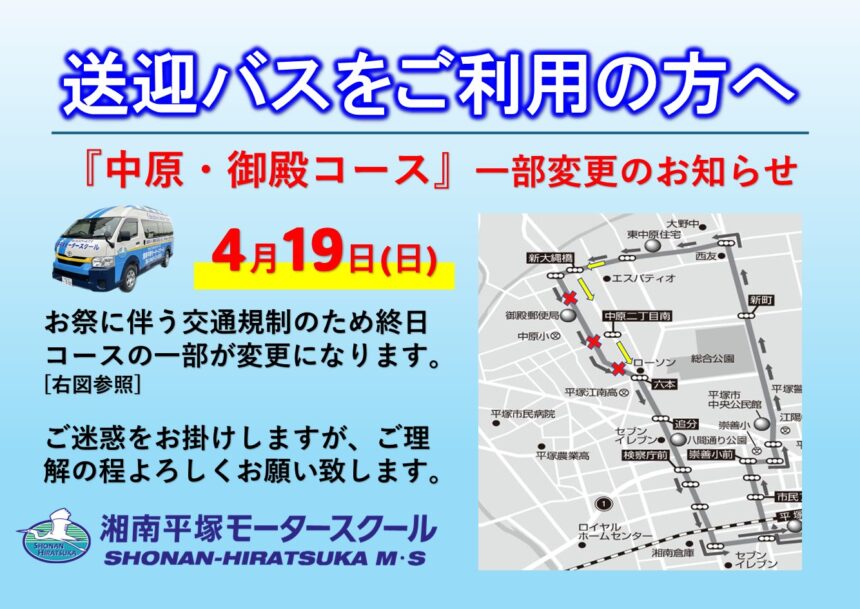 送迎バス「中原・御殿コース」コース一部変更のお知らせ