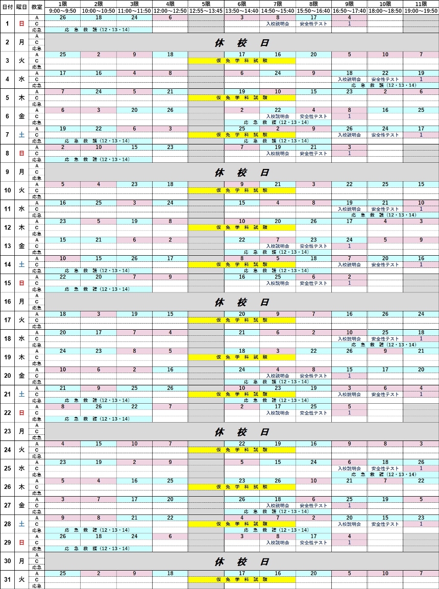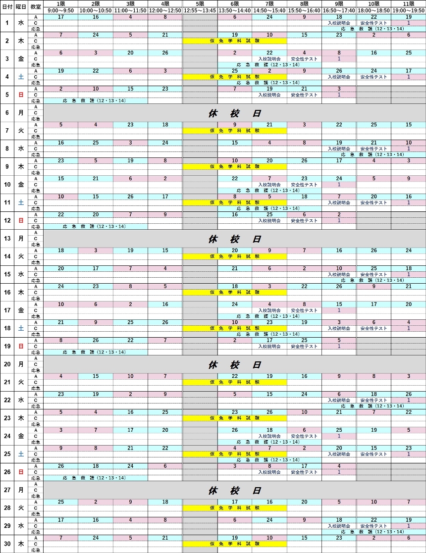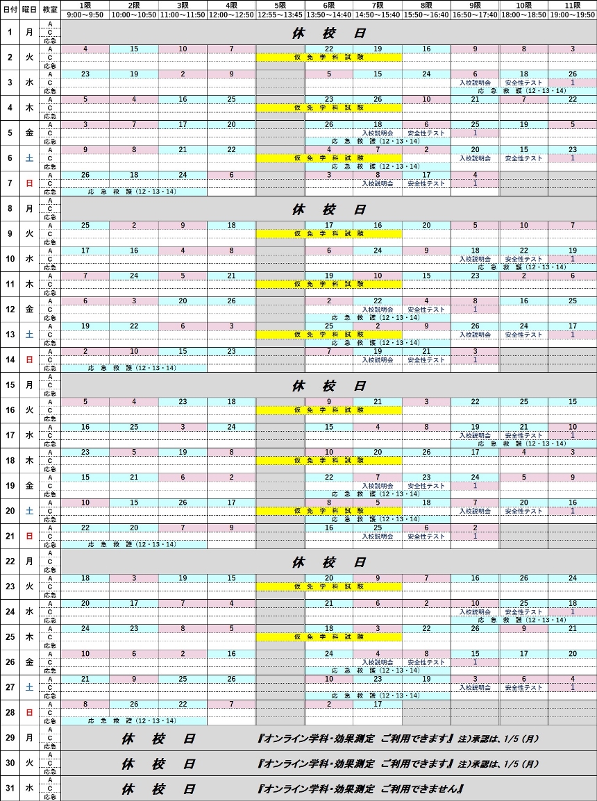 火~土曜 9:00-19:50/日曜 9:00-17:40/月曜休校