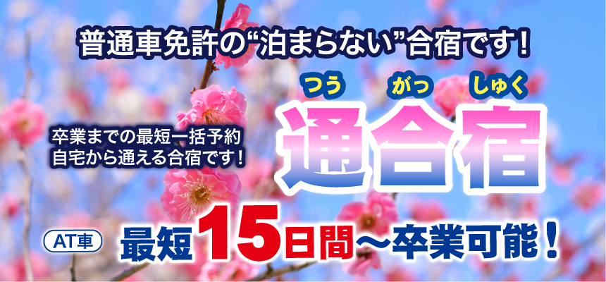 - 通合宿(短期コース)は、当校で設定した予定に沿って通学していただくコースとなります。